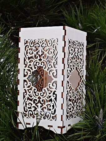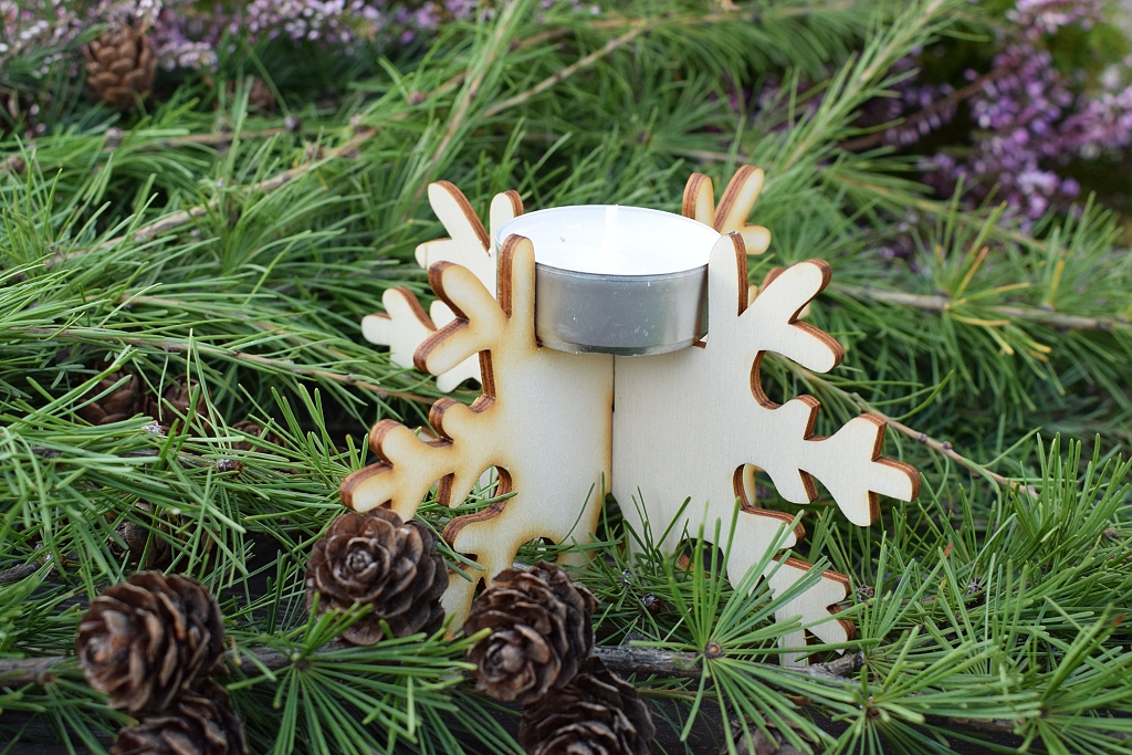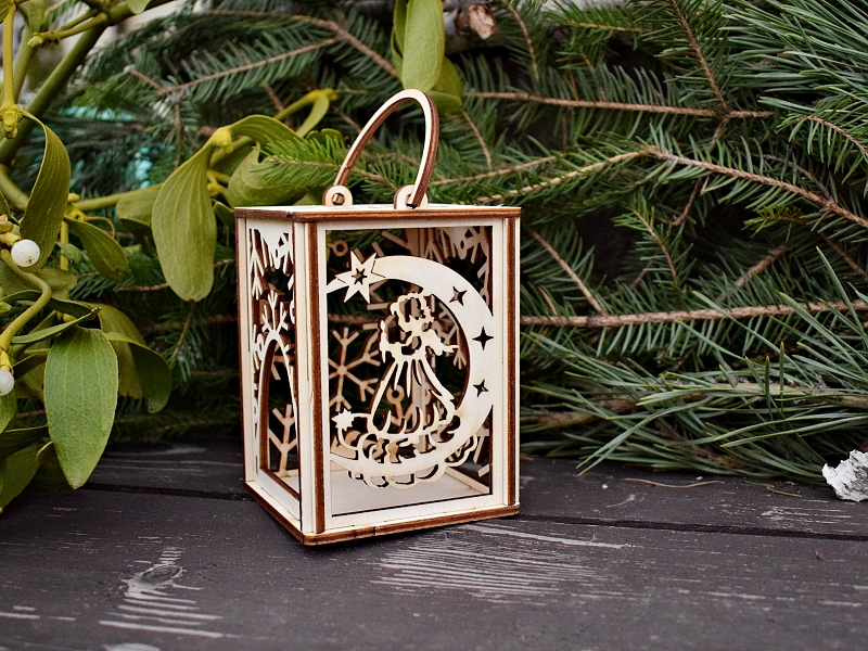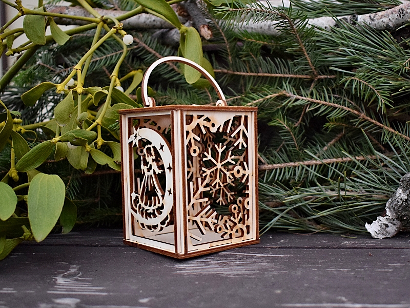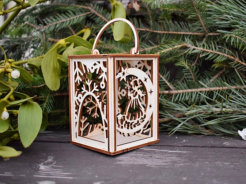 Motiv 2 stěn jsou vločky, na 3. stěně je andílek, do 4. stěny se vkládá svíčka. Rozměr: 7 cm x 7 cm x výška 10 cm, cena: 90,- Kč/ kus.