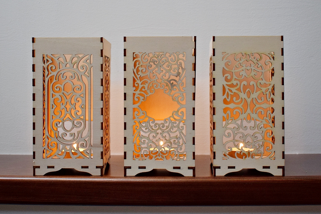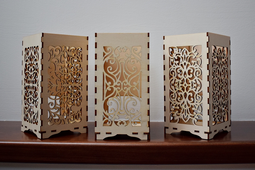 V nabídce máme 6 typů stínítek, rozměr: 4 stěny: 19 x 9,5 cm, 4. stěna – otvor na svíčku, cena: 110,- Kč/kus.